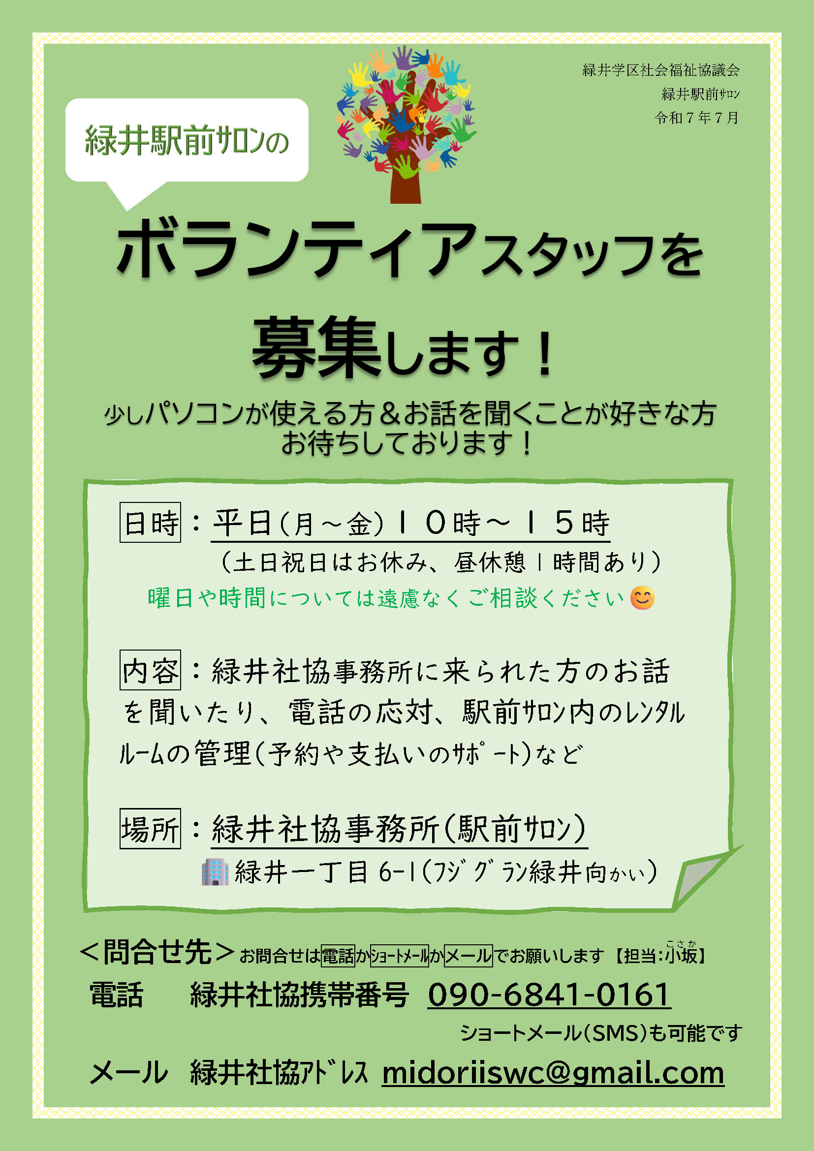 【募集】緑井駅前サロンのボランティアスタッフ